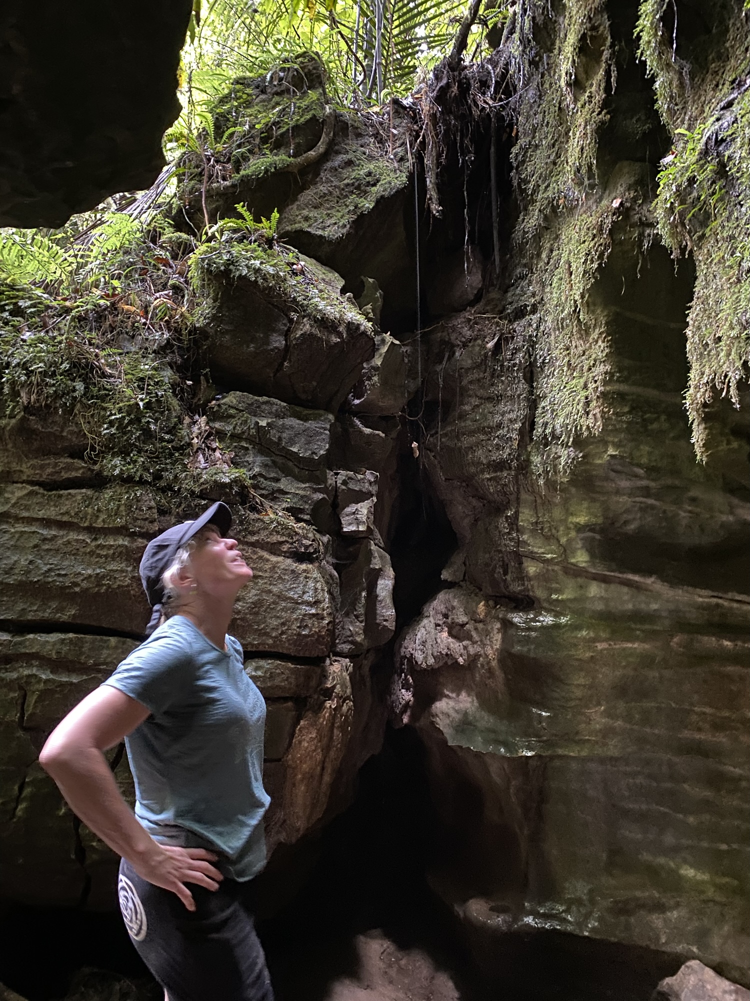 We make the Nikau walk and sure enough the path is unscathed. And this is my favourite type of track. Shingle path, surrounded by New Zealand native bush, the towering canopy trees of the rimu and kaihikatea, the ground cover of ferns and moss. And that cool feeling against your skin, and the quiet sound of serenity as any life woes disappear. We decide the caves are too wet and reason the danger of flash floods? One could suggest its code for neither of us really like tight spaces and the thought of squeezing our way through tight crevasses freak me out as much as eels. Conquering one fear is enough. Afterall this is a make-believe hike. A real one, maybe I’d push the challenge boundaries further. Maybe. Unlikely.