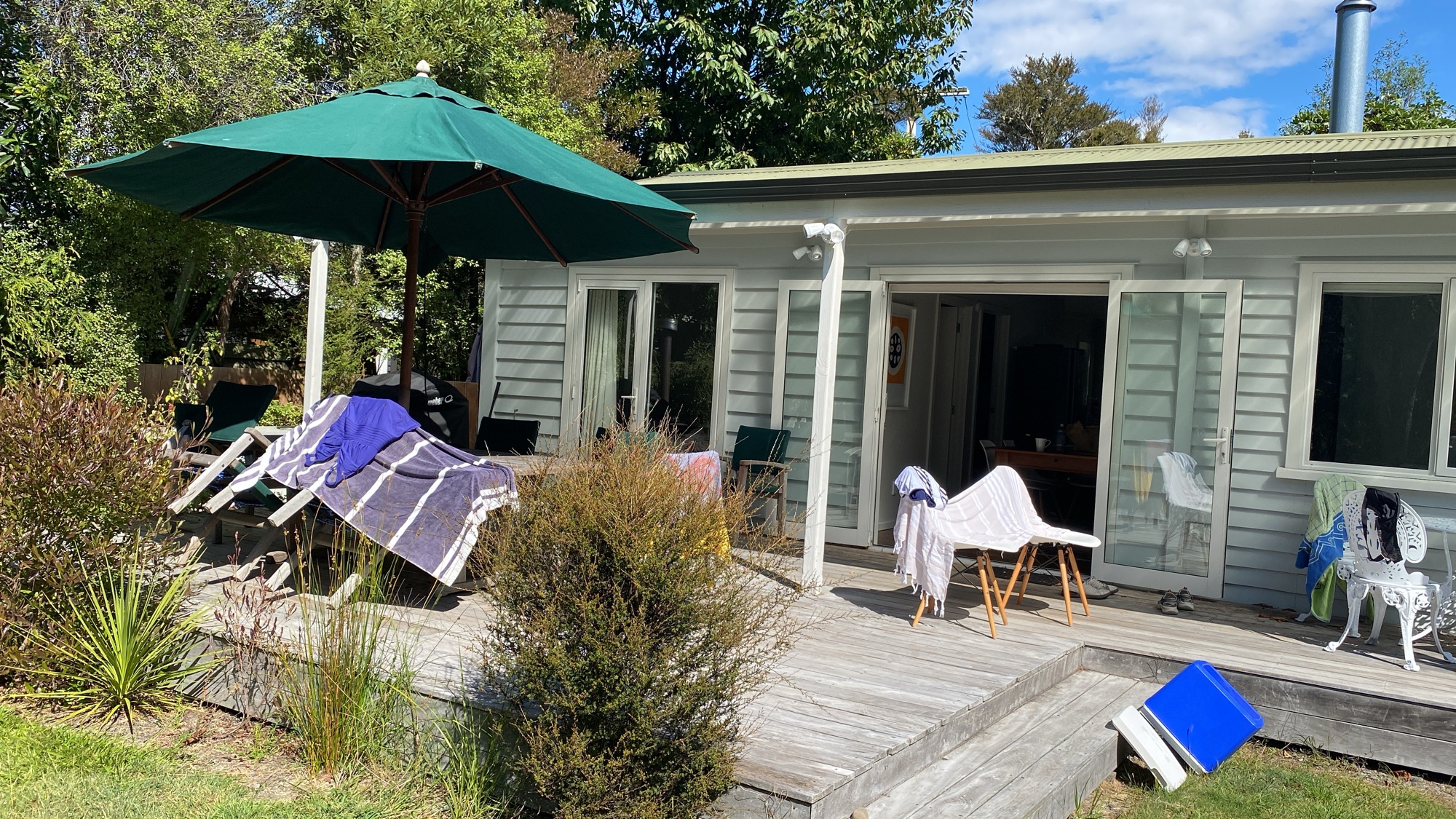 We all enjoy a relaxed afternoon relishing the ‘pause’ button still being firmly on. After chilling in the sun at home on the deck, Jessica visits nearby relatives, while Anneke, Simon and I enjoy the delightful Tongariro River Trail. We regroup for the evening BBQ, savouring the last of the longer autumn evenings. Jessica sets to making dessert with the freshly picked apples from one of the trees in the garden. Simon proves his prowess as a custard maker. With a bowl of apple and feijoa crumble and custard, and glass of wine, we nestle back into the large corner couch for evening conversations.
